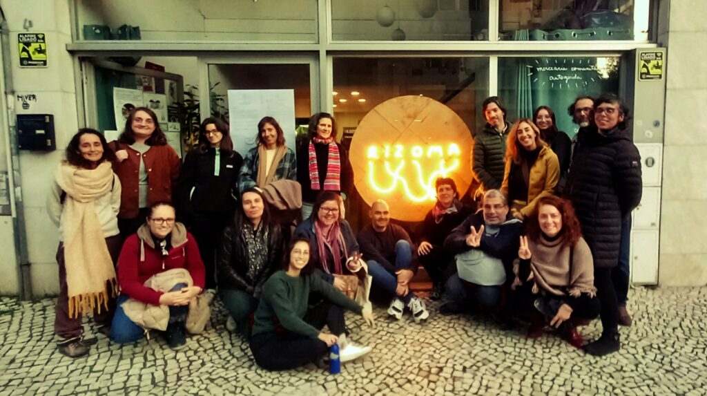 This was followed by a guided tour of Rizoma’s various collaborative spaces, followed by the integration of the Ecoprise group in helping to prepare the social dinner with other members – representing the strong collaborative and social component of the cooperative, which culminated in an informal get-together between everyone, marking the end of the activity and a group photo. Participants had the option of staying for the Cooperative’s end-of-day activities, such as an information and debate session on changes to the Labour Package and the Social Dinner at Rizoma with cooperative members.