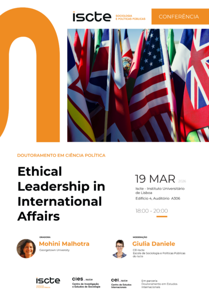 A próxima conferência do Doutoramento em Ciência Política e Doutoramento em Estudos Internacionais, realiza-se a 19 de março de 2026, no Auditório A306 do Ed.4 do Iscte – Conhecimento e Inovação.