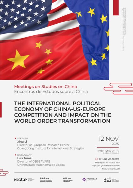 O orador convidado é Xing Li, Diretor do European Research Center, Guangdong Institute for International Strategies – Guangdong University of Foreign Studies (China) e Professor de Relações Internacionais da Aalborg University (Dinamarca), com a comunicação “The International Political Economy of China-US-Europe competition and the Impact on the World Order Transformation”. A sessão terá como comentador Luís Tomé, Diretor do OBSERVARE, e Professor Catedrático da Universidade Autónoma de Lisboa.